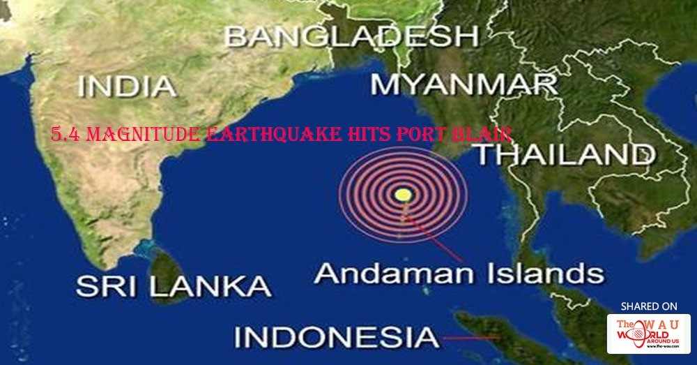 According to the United States Geological Survey (USGS), an earthquake at 5.4 magnitude on the Richter scale was experienced in the Andaman Sea. A 162 kilometers south-west region of Port Blair was hit by the quake.