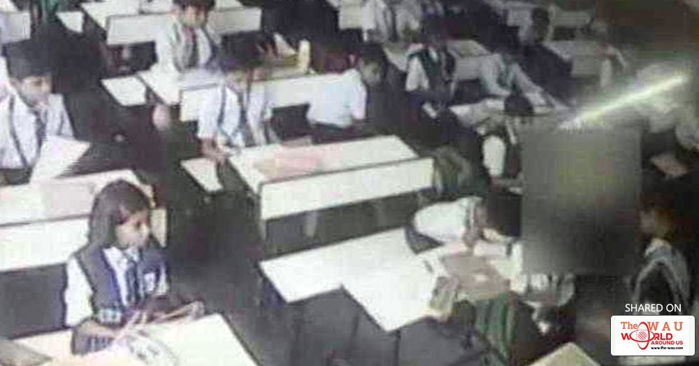 Footage from the CCTV camera fitted in the classroom shows close to forty children, stunned as they watched their teacher Retika V John snatch a sheet of paper from the boy and slap him mercilessly with both her hands. The teacher is also seen dragging the child by his tie.