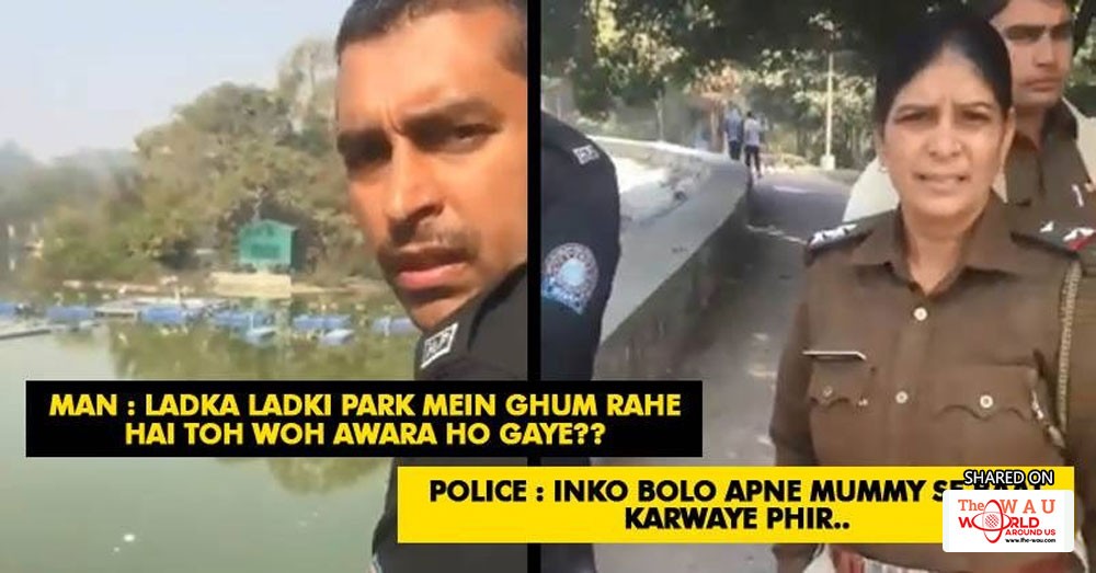 The officers seemed to be determined to make them call their parents but just then, a person who was watching all the happenings intervened and questioned the officers as to why they are harassing the couple.