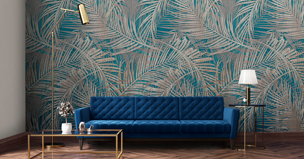 If your living room has a country feel to it, wallpaper with large botanical prints is an excellent option. To make it stand out, choose plain or simple patterns in your soft furnishings.