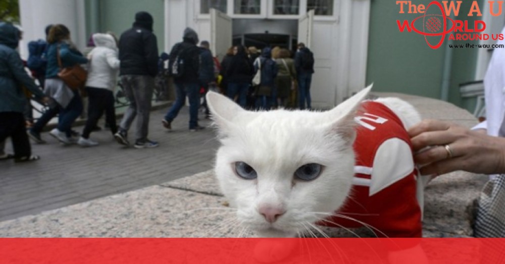 The blue-eyed feline is usually part of a team of dozens of cats that guard Saint Petersburg's Hermitage museum from rodents, but has taken on a new role for the football event.