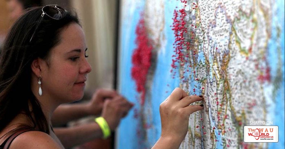 - Touch and hold anywhere on the map. You'll see a red pin appear.