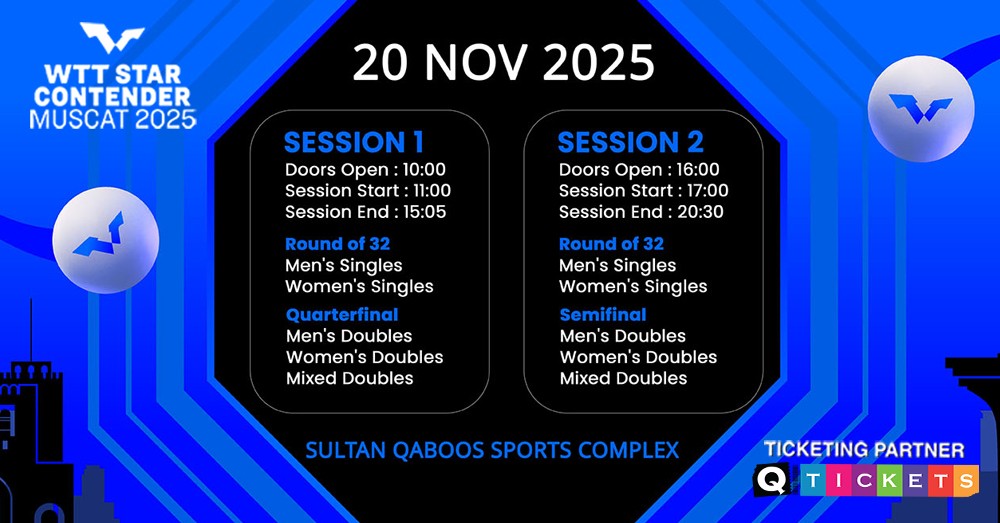 This is your opportunity to witness table tennis history in Muscat. The excitement, the talent, the drama - it's all happening live at the WTT Star Contender Muscat 2025.